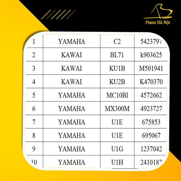 Tổng kho Piano Hà Nội vừa đón lô hàng mới gồm nhiều mẫu piano điện và piano cơ từ Nhật Bản – tất cả đều được tuyển chọn kỹ lưỡng, đảm bảo chất lượng – âm thanh – hình thức đạt chuẩn cao nhất.