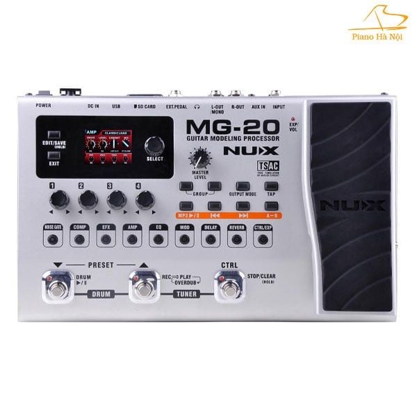MG-20 có 3 công tắc chân đa chức năng. Bạn có thể chuyển đổi cài đặt trước, điều khiển chức năng chơi trống và looper bằng 2 bàn đạp chính. Và nó có một bàn đạp điều khiển có thể gán "CTRL", cho phép bạn truy cập nhanh các điều khiển âm thanh và cũng có thể vận hành trạm vòng lặp. Bạn có thể kết nối thêm một bàn đạp bên ngoài thông qua đầu vào "EXT. PEDAL" của MG-20 ở trên cùng để có được trải nghiệm bàn đạp đa fx tốt hơn.
