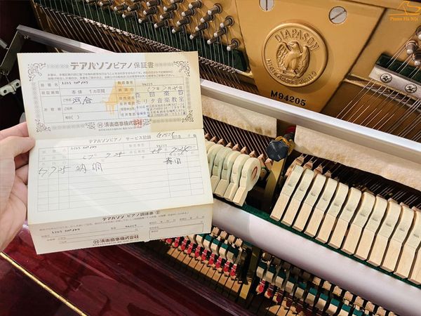- Tặng bộ phụ kiện : Ghế piano, khăn phủ đàn, khăn phủ phím, ống sấy, khóa đàn
